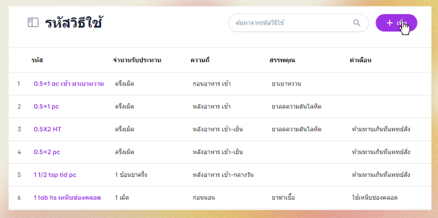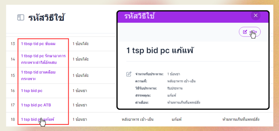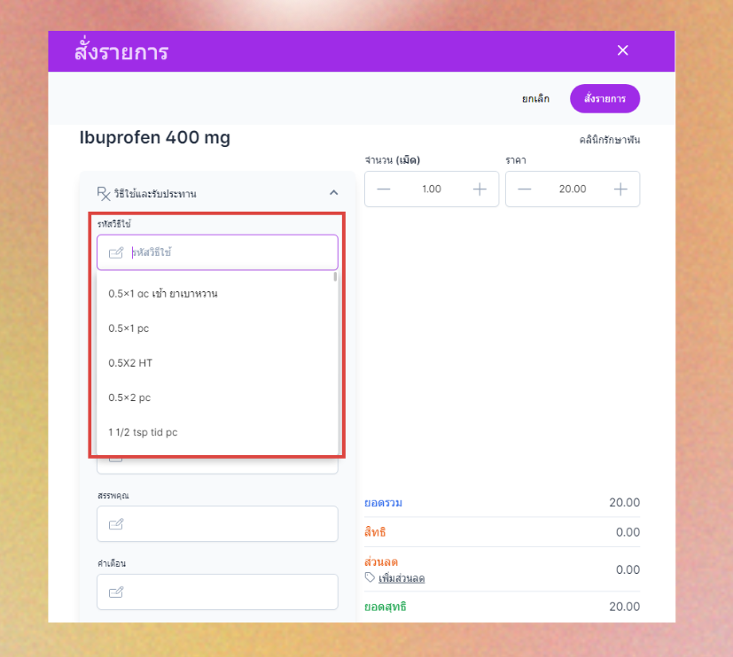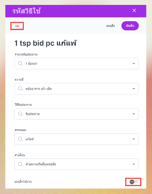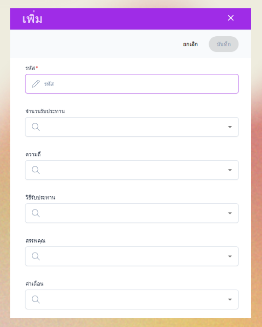 - วิธีรับประทาน จะแสดงจากรายการที่ผู้ใช้งานตั้งค่าใน วิธีรับประทาน