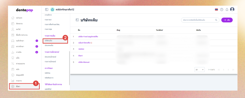 ไปที่เมนูตั้งค่า > บริษัทแล็บ