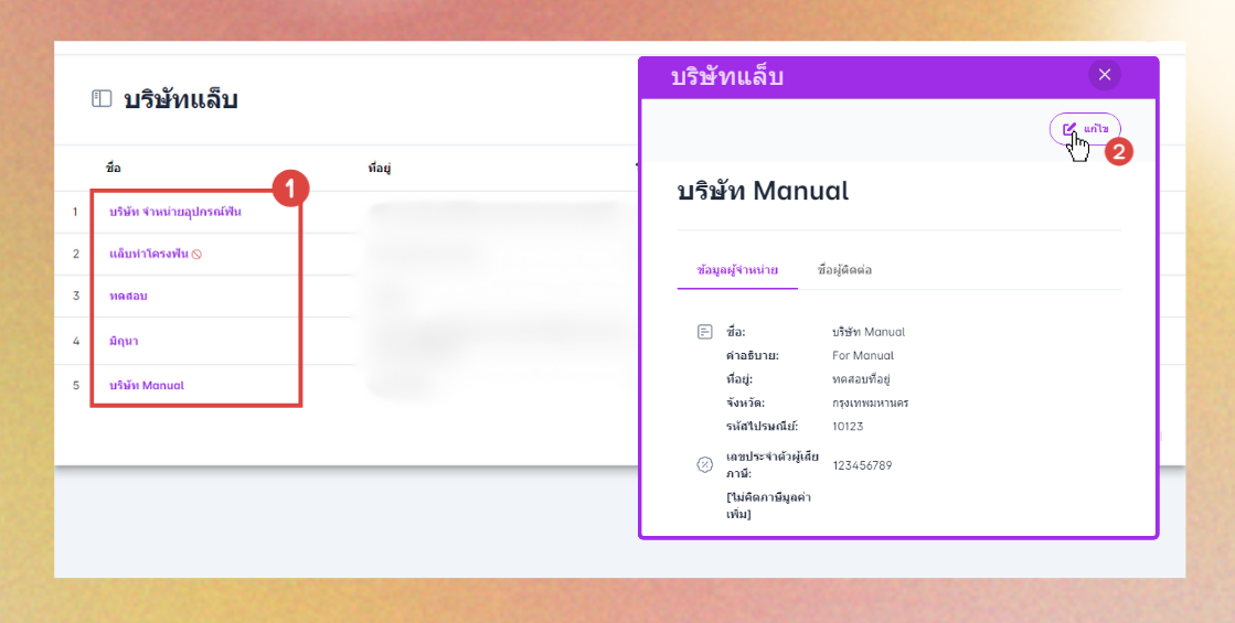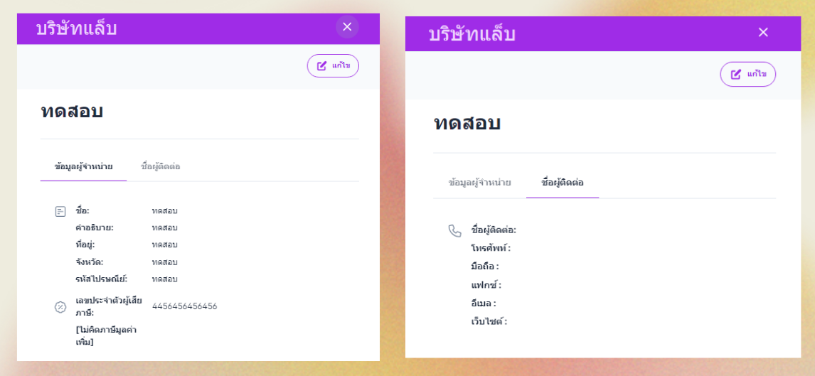 ระบบจะแสดงข้อมูลบริษัทแล็บ จากนั้นกด แก้ไข้