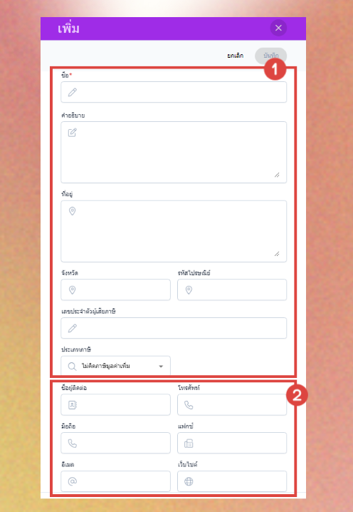 - ส่วนที่ 2 จะถูกบันทึกลงใน ชื่อผู้ติดต่อ