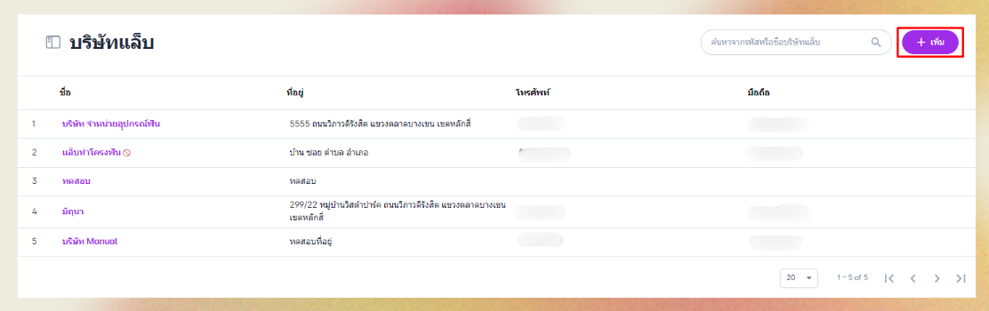 เมื่อกรอกข้อมูลเรียบร้อยแล้วกดบันทึก ระบบจะบันทึกข้อมูลบริษัทแล็บ
