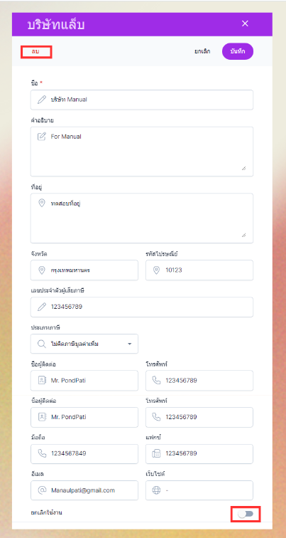 ผู้ใช้งานจะสามารถแก้ไขข้อมูล ,ลบ, ยกเลิกการใช้งานได้