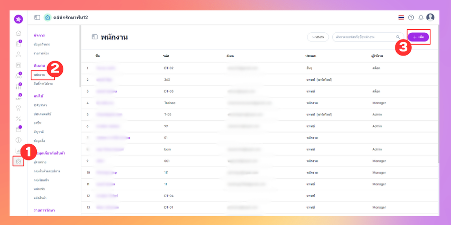 ระบบจะแสดงหน้าต่างการเพิ่มผู้ใช้งาน ข้อมูลพนักงานประกอบไปด้วย