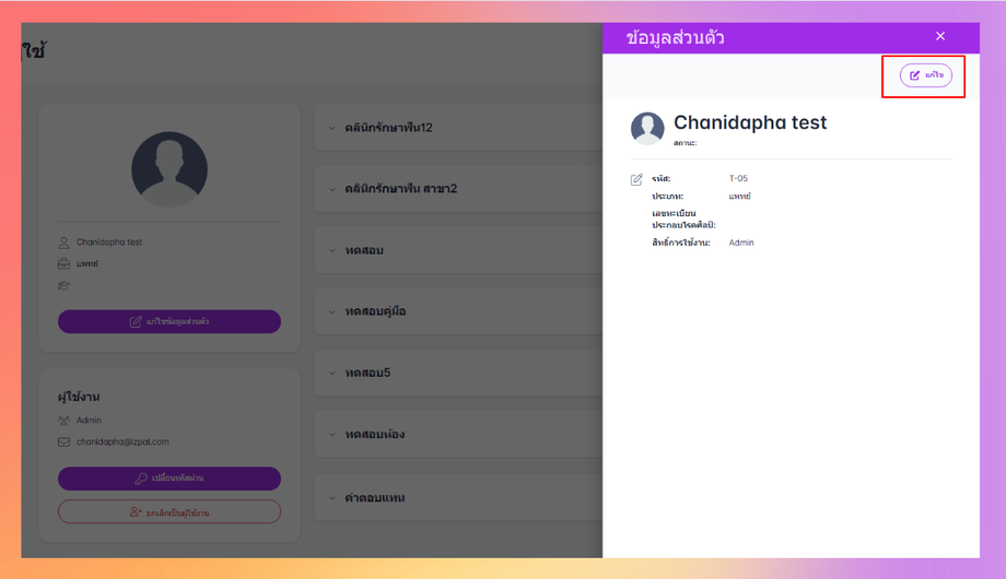 4. กดคลิกแก้ไขข้อมูลส่วนตัว ระบบจะแสดงหน้าต่างข้อมูลพนักงาน
