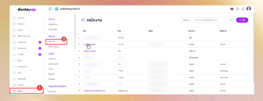 ประเภท(จำเป็น): ประเภทพนักงานจะมีผลกับสิทธิ์การใช้งานระบบ เช่น แพทย์ จะสามารถกำหนดค่าตอบแทนการรักษาได้