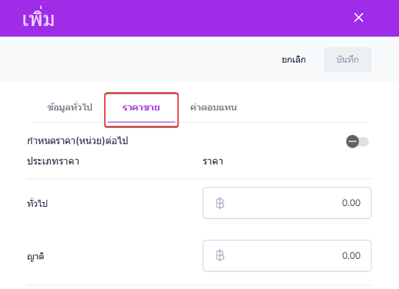 กำหนดราคาแต่ละประเภท