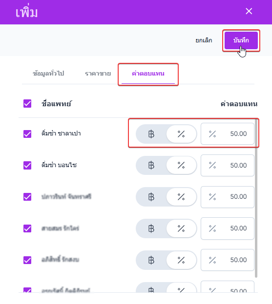 เมื่อตั้งค่าเสร็จสิ้น คลิกปุ่ม บันทึก ระบบจะบันทึกการแก้ไขการรักษาของรายการที่ผู้ใช้งานเลือก