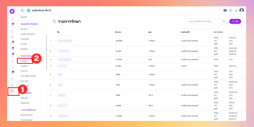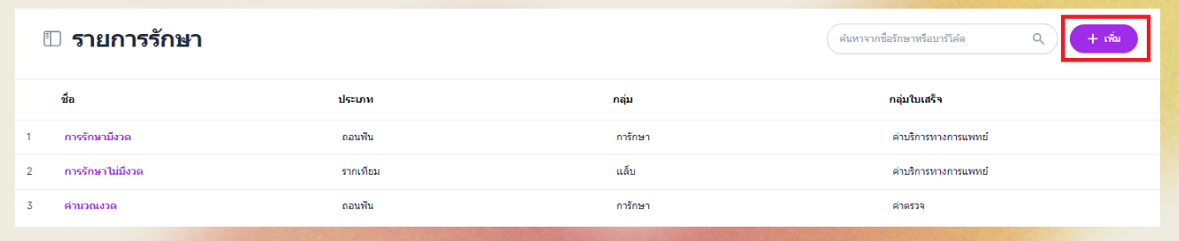 เมื่ออยู่ในหน้ารายการรักษาคลิกปุ่มเพิ่ม