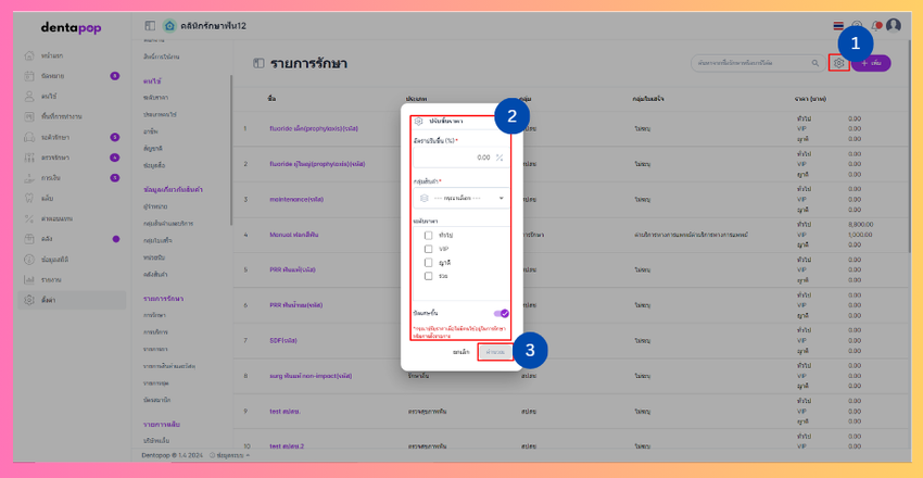 สามารถแก้ไขราคารายการรักษาได้ทั้งหมดทุกรายการ โดยอัตราปรับขึ้นเป็น %