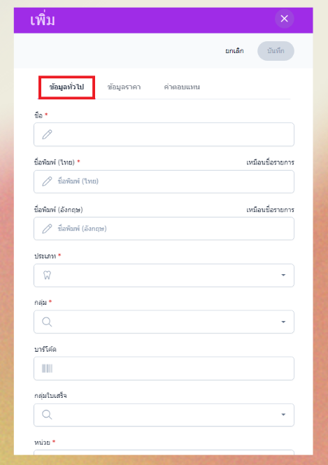 ระบบจะแสดงหน้าต่างเพิ่มข้อมูล