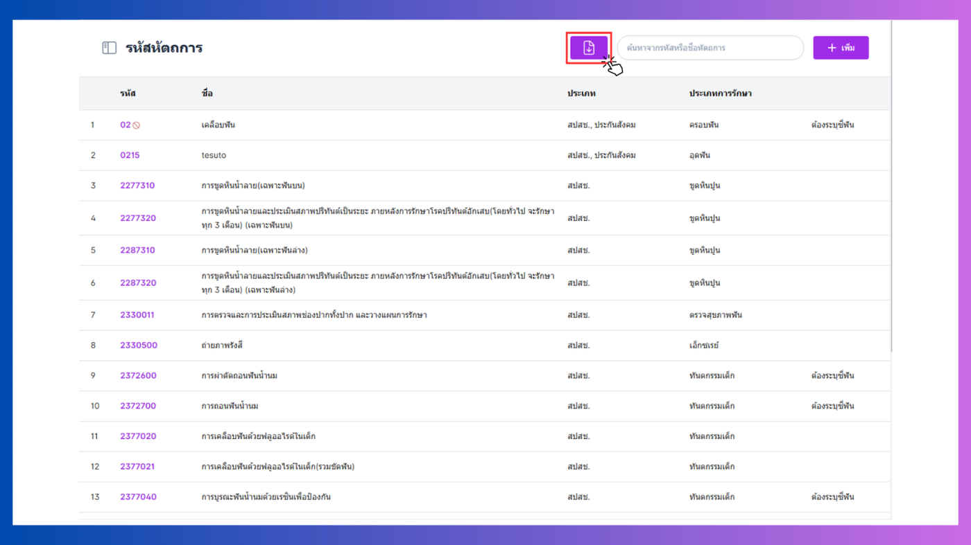 - นำเข้ารหัสหัตถการ คือคลิกแล้วจะไปที่หน้ารหัสหัตถการ คลิกเพื่อดาวน์โหลดได้