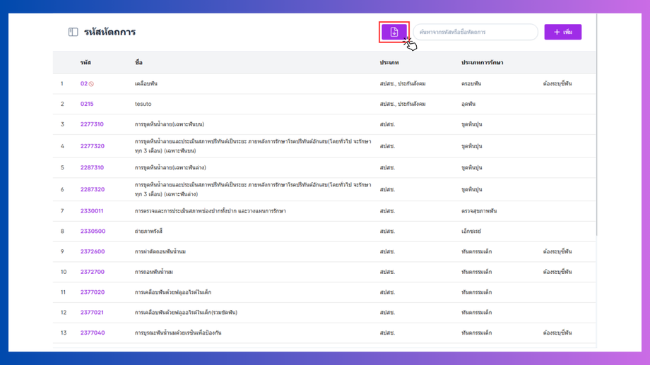 การนำเข้าข้อมูลรหัสหัตถการ หรือ ICD10TM เพื่อใช้ในการบันทึกเพื่อการเบิกจ่ายกับทาง สำนักงานหลักประกันสุขภาพแห่งชาติ