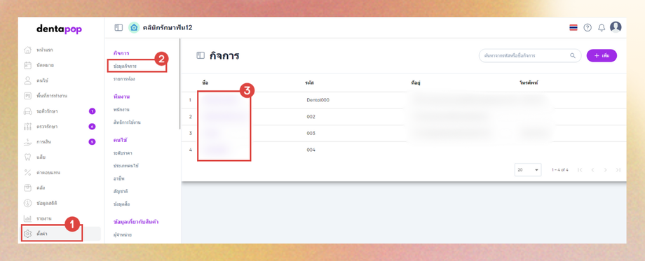 เลือกเมนูกิจการ > ข้อมูลกิจการ