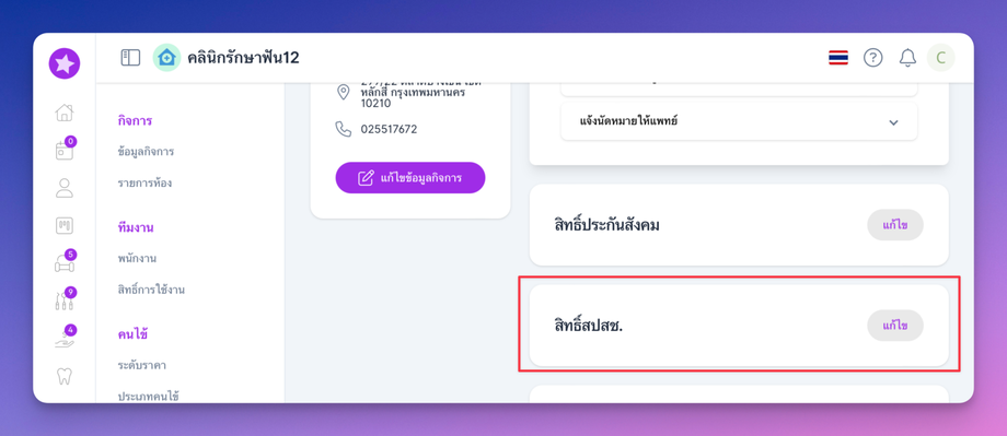 เปิดใช้สิทธิการรักษา : เช่น ประกันสังคม สามารถเปิด-ปิดการใช้งานส่วนนี้ได้