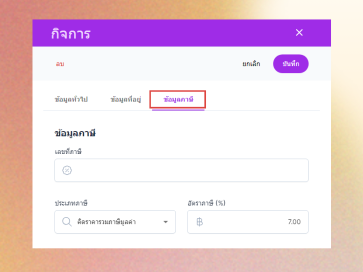 การตั้งค่าข้อมูลภาษีประกอบด้วย