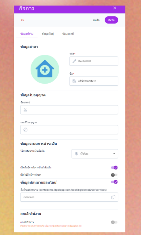 การยกเลิกใช้งานสาขา : เมื่อทำการยกเลิกจะไม่สามารถเข้าใช้งานสาขาที่ทำการยกเลิกได้