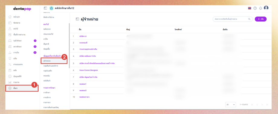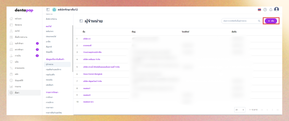 เมื่อผู้ใช้อยู่ในหน้าผู้จำหน่าย คลิกปุ่มเพิ่ม
