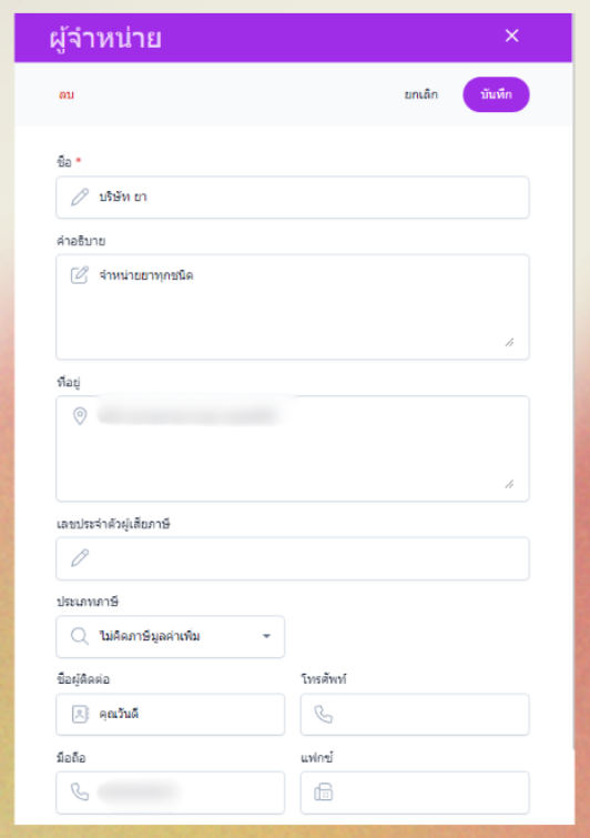 ระบบจะแสดงหน้าต่างกรอกข้อมูลผู้จำหน่าย