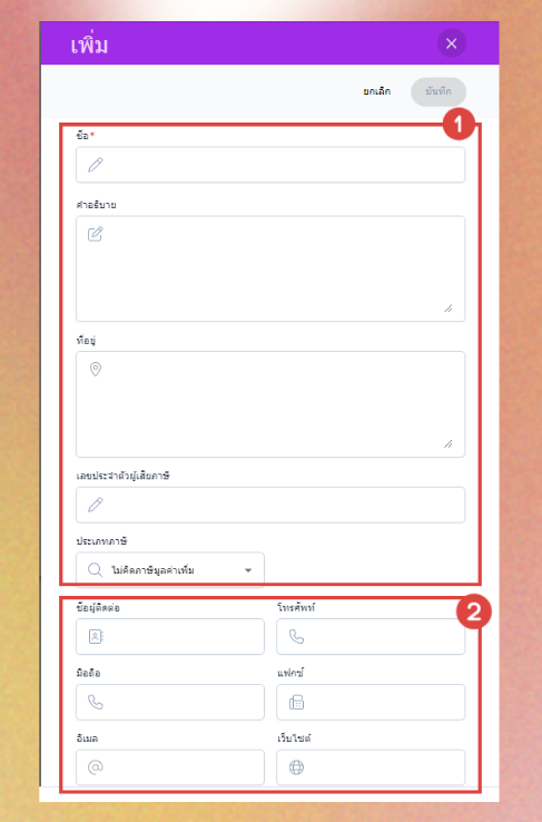 - ส่วนที่ 2 จะถูกบันทึกลงใน ชื่อผู้ติดต่อ