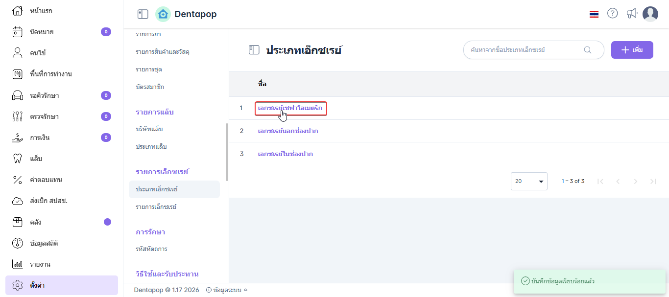 เมื่อแก้ไขข้อมูลเสร็จสิ้นคลิก บันทึก เพื่อบันทึกการแก้ไขประเภทเอ็กซเรย์