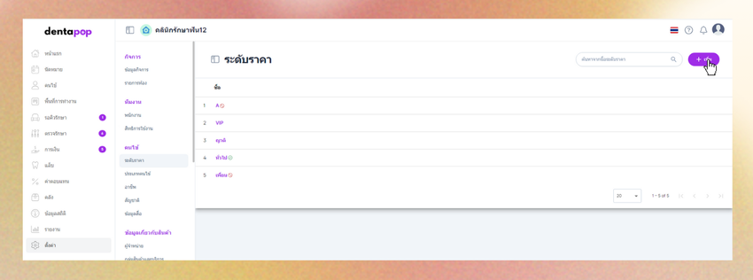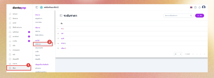 การตั้งค่าข้อมูลระดับราคาคนจะแสดงการเลือกระดับราคาคนไข้ในขั้นตอนการเพิ่มคนไข้ และ แก้ไขข้อมูลคนไข้