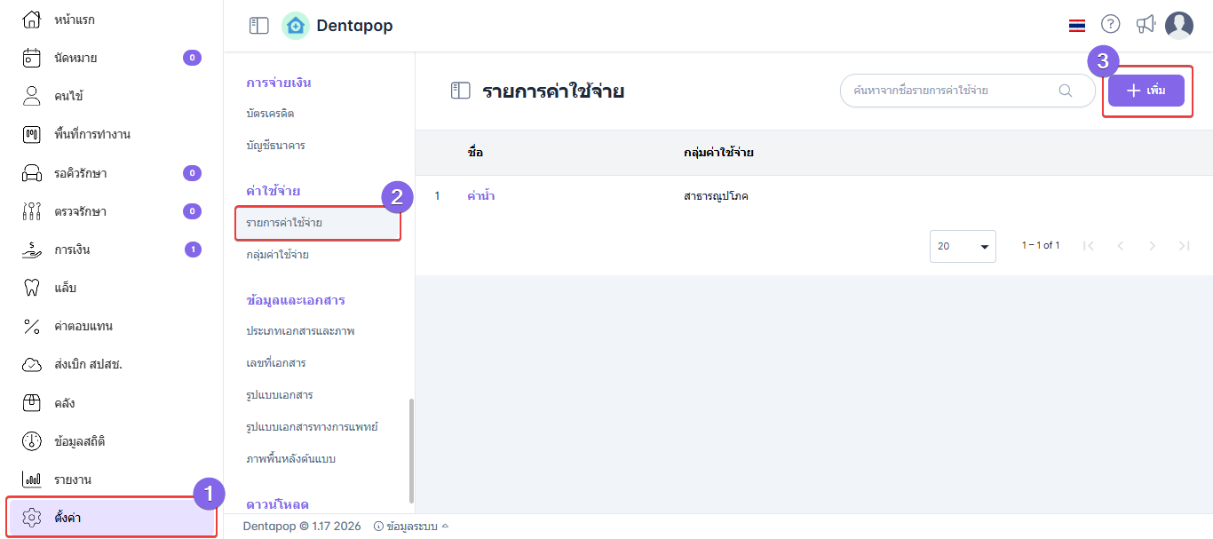 เมื่อผู้ใช้อยู่ในหน้ารายการค่าใช้จ่าย คลิกปุ่มเพิ่ม