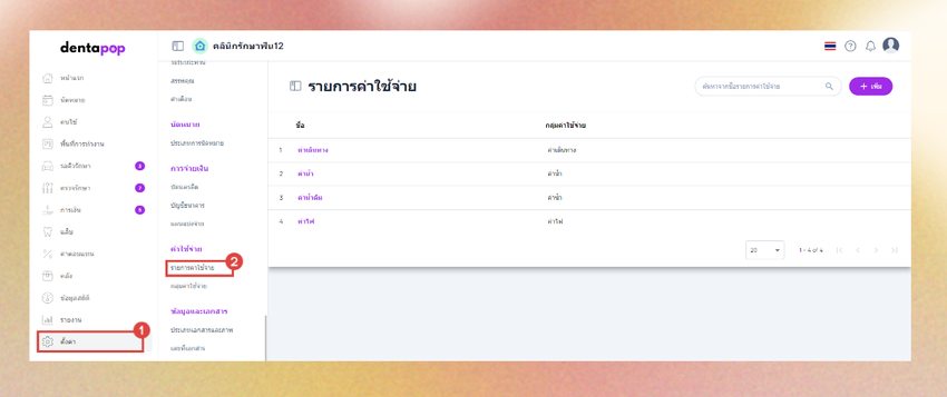 ผู้ใช้งานจะเข้าสู่หน้าการตั้งค่ารายการค่าใช้จ่าย