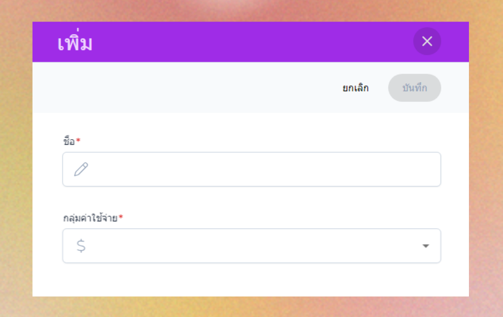 คลิกที่ปุ่มเพิ่ม ระบบจะแสดงหน้าต่างเพิ่มรายการค่าใช้จ่าย