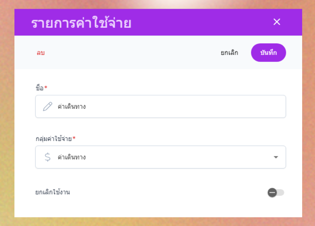 - ชื่อ : ชื่อรายการค่าใช้จ่าย