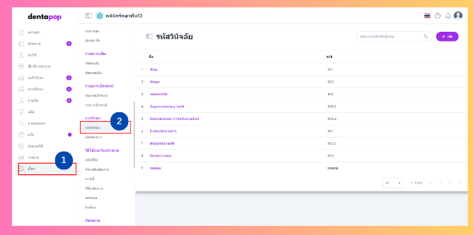 ผู้ใช้งานจะเข้าสู่หน้าตั้งค่ารหัสโรค