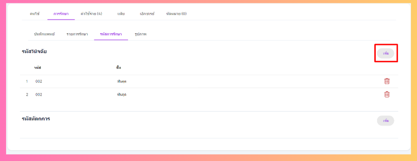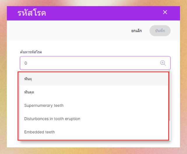 ระบบจะแสดงหน้าต่างเพิ่มรหัสโรค