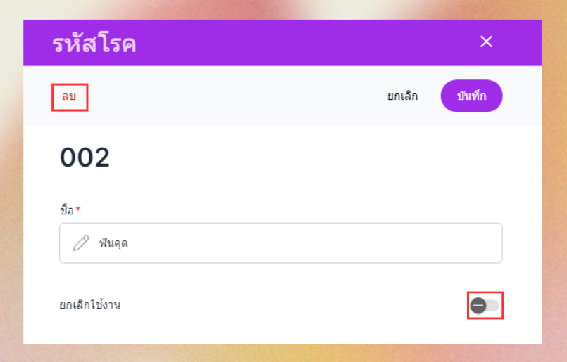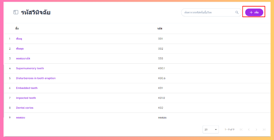 - ชื่อ ชื่อรหัสโรคที่จะแสดงในระบบ