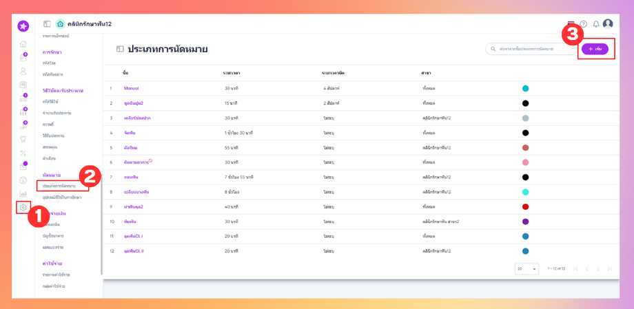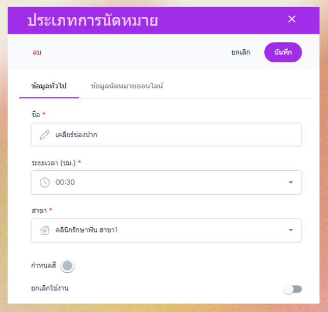 ตั้งค่าประเภทการนัดหมาย
