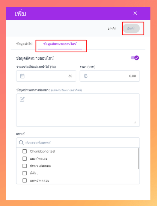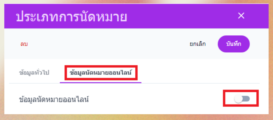 การตั้งค่าข้อมูลนัดหมายออนไลน์