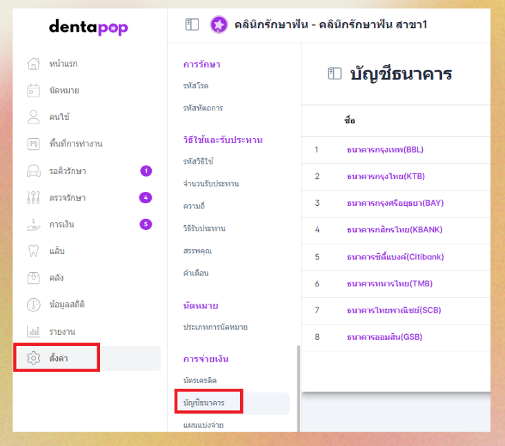 ผู้ใช้งานจะเข้าถึงหน้าบัญชีธนาคาร
