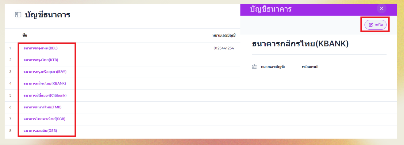 คู่มือจะแนะนำขั้นตอนที่คุณต้องทำเพื่อเพิ่มหรือแก้ไขข้อมูลบัญชีธนาคารในระบบของคุณ รวมถึงการกรอกข้อมูลบัญชี, การตรวจสอบความถูกต้อง, และขั้นตอนการยืนยันข้อมูล.