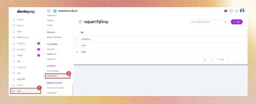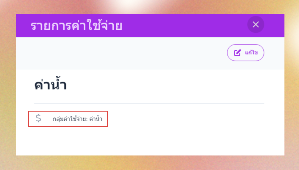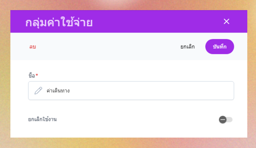 การตั้งค่ากลุ่มค่าใช้จ่ายจะแสดงเป็นตัวเลือกในการตั้งค่ารายการค่าใช้จ่าย เพื่อใช้ระบุกลุ่มในรายการค่าใช้จ่าย