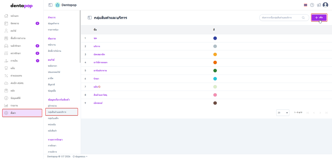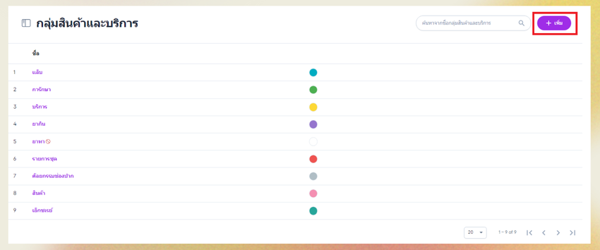 เมื่อผู้ใช้อยู่ในหน้ากลุ่มสินค้าและบริการ คลิกปุ่มเพิ่ม
