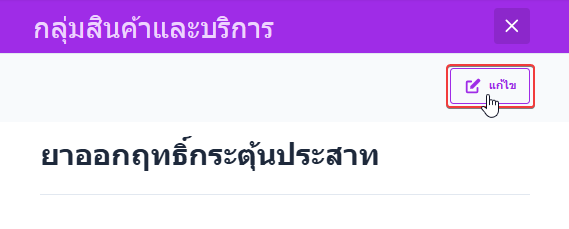 ผู้ใช้งานคลิกปุ่ม แก้ไข เพื่อเปิดหน้าต่างการตั้งค่าแก้ไขกลุ่มสินค้าและบริการ