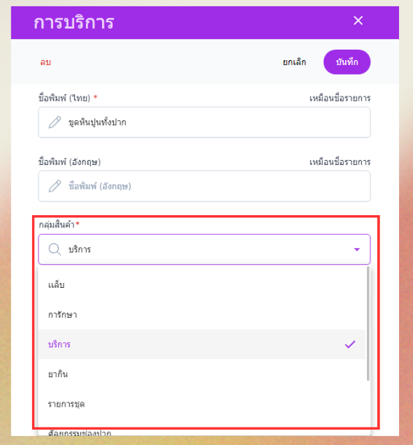 ระบบจะแสดงรายการกลุ่มในการเลือกในสินค้า หรือ บริการ