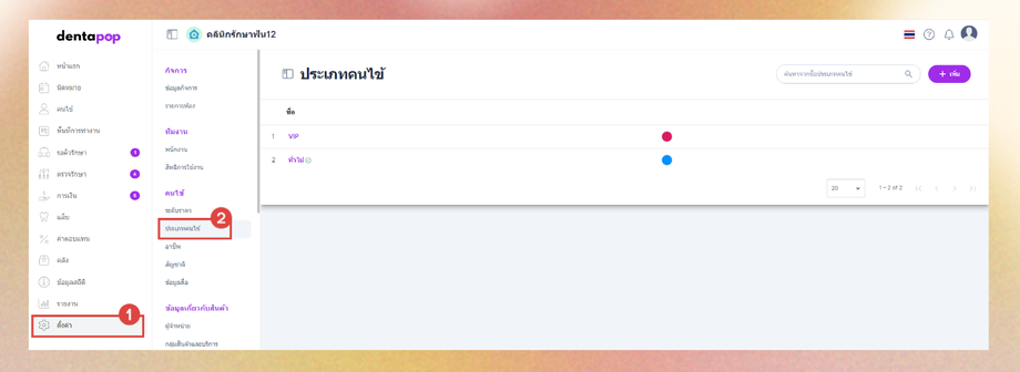 คือ การแบ่งประเภทคนไข้ออกเพื่อแบ่งกลุ่มคนไข้ การตั้งค่าข้อมูลประเภทจะแสดงการเลือกประเภทในขั้นตอนการเพิ่มคนไข้ และ แก้ไขข้อมูลคนไข้