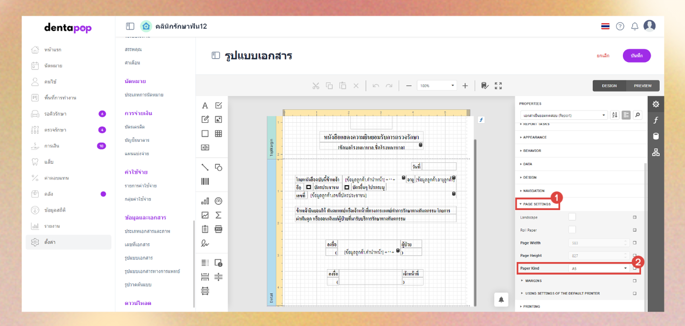 - ระบบจะแสดงหน้าต่างข้อมูลเอกสาร คลิกออกแบบ
