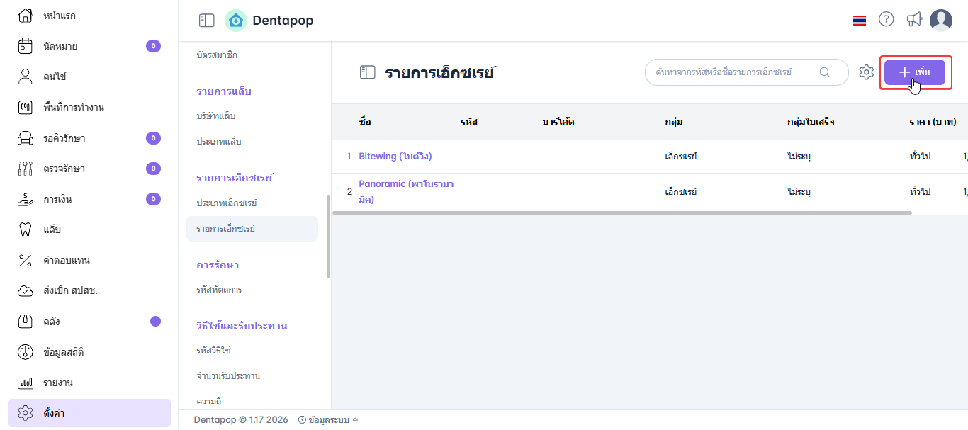 การเพิ่มรายการเอ็กซเรย์