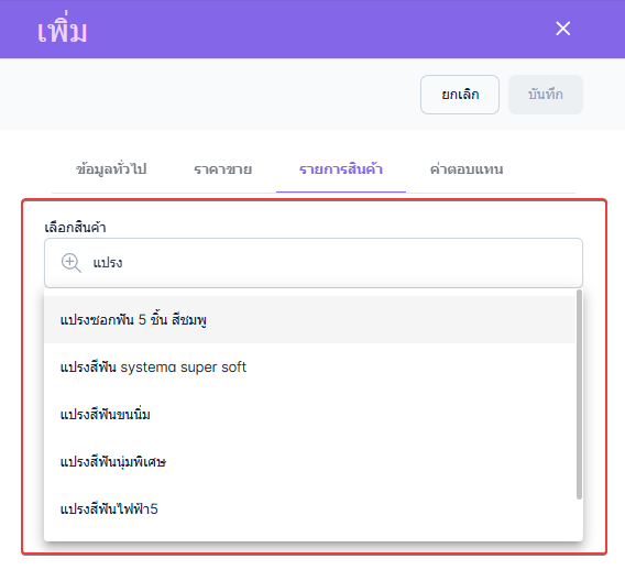 ผู้ใช้งานสามารถกำหนดราคาขายเพื่อใช้สำหรับประเภทราคาที่ผู้ใช้งานเลือกให้ลูกค้า
