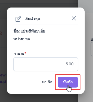 เมื่อผู้ใช้งานเลือกรายการสินค้า ระบบจะให้ผู้ใช้งานกรอกจำนวนสินค้าที่ต้องการให้อยู่ในรายการเอ็กซเรย์