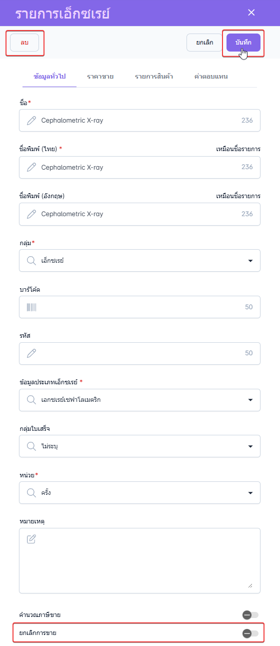 เมื่อแก้ไขข้อมูลเสร็จสิ้นคลิก บันทึก เพื่อบันทึกการแก้ไขรายการเอ็กซเรย์