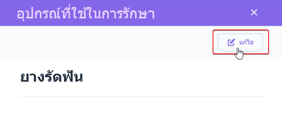 เมื่อระบบแสดงหน้าต่างอุปกรณ์ที่ใช้ในการรักษาขึ้นมา ผู้ใช้งานคลิกแก้ไขเพื่อทำการแก้ไขอุปกรณ์ที่ใช้ในการรักษา