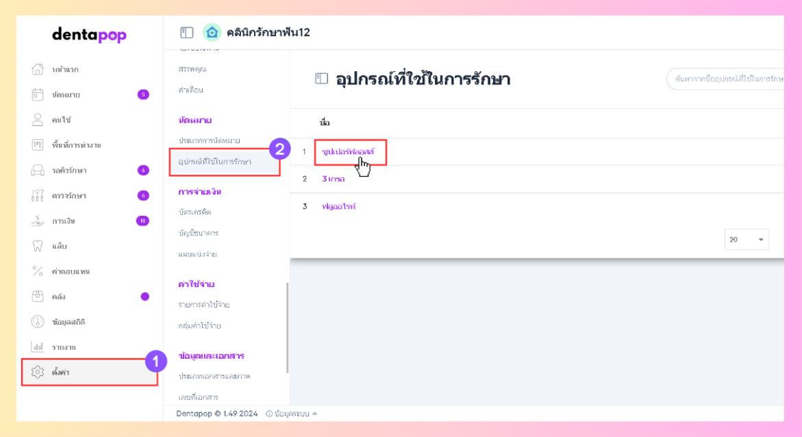 - คลิกที่ตั้งค่า > อุปกรณ์การใช้ในการรักษา