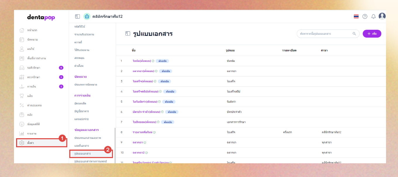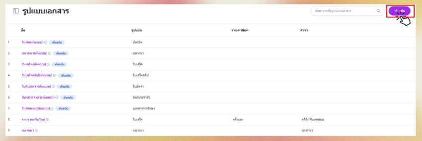 เมื่อผู้ใช้งานเข้าถึงหน้าการตั้งค่ารูปแบบเอกสารแล้ว คลิกที่ปุ่มเพิ่ม