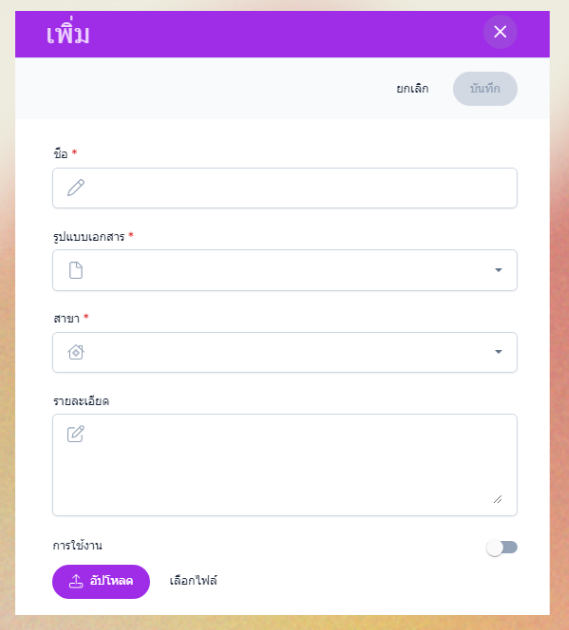 - ชื่อ : ชื่อเอกสารที่แสดงในระบบ